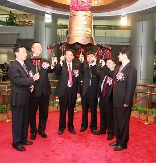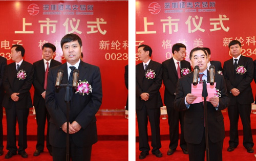 上午9點(diǎn),格林美迎來了發(fā)展歷程中最激動(dòng)人心的一幕:“格林美”A股在深圳證券交易所掛牌上市。公司董事長許開華先生在上市儀式上發(fā)表了熱情洋溢的講話。寶安區(qū)人民政府副區(qū)長王立新先生和深交所領(lǐng)導(dǎo)分別致辭,祝賀格林美上市掛牌成功。在儀式上,深圳證券交易所和公司互贈(zèng)禮品,祝賀格林美成功上市,寶安區(qū)人民政府副區(qū)長王立新先生和格林美董事長許開華先生以及積成電子和新倫科技兩家企業(yè)共同敲響了開市寶鐘?!案窳置馈背晒Φ顷懮钲贏股,標(biāo)志中國開采“城市礦山”資源第一股的誕生,成為循環(huán)經(jīng)濟(jì)和低碳經(jīng)濟(jì)領(lǐng)域的成功典范。