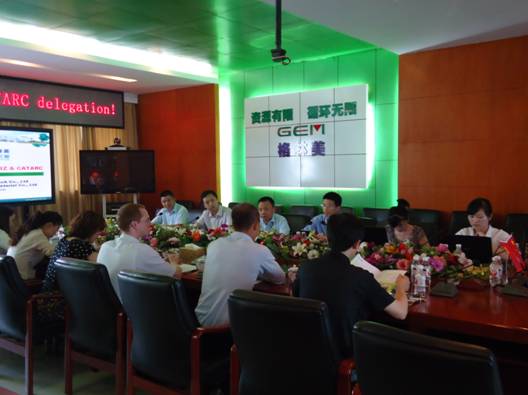 2012年6月12日,德國國際合作機(jī)構(gòu)GIZ中德動(dòng)力電池回收小組負(fù)責(zé)人及成員、中國汽車技術(shù)研究中心(CATARC)、大眾汽車(中國)以及寶馬(中國)的代表們蒞臨荊門格林美城市礦產(chǎn)資源循環(huán)產(chǎn)業(yè)園,考察了格林美在廢舊電池的回收技術(shù)、循環(huán)化處理、環(huán)保處理等方面的科技創(chuàng)新成就以及在城市礦產(chǎn)資源循環(huán)產(chǎn)業(yè)的發(fā)展情況,公司總經(jīng)理周繼鋒、研發(fā)部何顯達(dá)經(jīng)理、企業(yè)商務(wù)服務(wù)中心黃威主任等進(jìn)行了熱情的接待,并就電子廢棄物處理與廢舊電池循環(huán)化處理生產(chǎn)高技術(shù)產(chǎn)品進(jìn)行了深入交流。