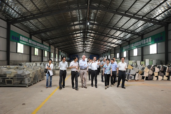 圖五 伯納德.福克斯先生(前左一)、許開華董事長(前右二)等參觀武漢陽邏電子廢棄物循環(huán)產(chǎn)業(yè)園