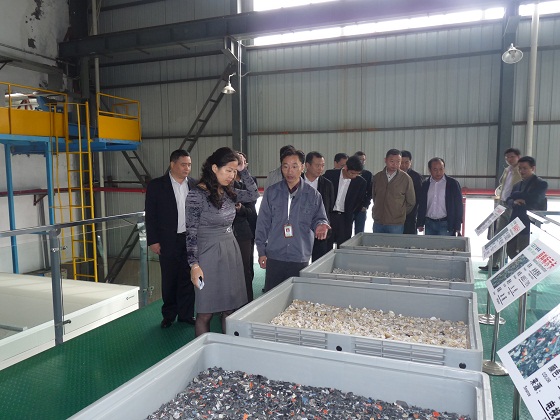 吳靜副市長(zhǎng)一行參觀電子廢棄物分廠塑料綜合分選車間