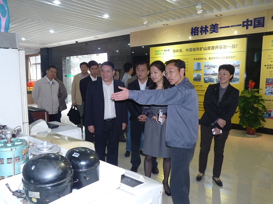 2011年10月14日,湖北宜昌市政府副市長(zhǎng)吳靜率宜昌市政府有關(guān)部門(mén)和企業(yè)負(fù)責(zé)人一行20多人,在武漢格林美資源循環(huán)有限公司總經(jīng)理王健和荊門(mén)格林美新材料有限公司常務(wù)副總經(jīng)理孫文力陪同下參觀考察了荊門(mén)格林美城市礦產(chǎn)資源循環(huán)產(chǎn)業(yè)園??疾靾F(tuán)一行參觀了電子廢棄物拆解車間、家電以舊換新專用倉(cāng)庫(kù)、廢水處理中心和研發(fā)中心,認(rèn)真聽(tīng)取了王健總經(jīng)理關(guān)于格林美在武漢和荊門(mén)構(gòu)建循環(huán)消費(fèi)再生資源回收體系、建設(shè)先進(jìn)電子廢棄物處置工廠的情況以及未來(lái)規(guī)劃的匯報(bào),并探討如何推進(jìn)以先進(jìn)技術(shù)為背景的循環(huán)消費(fèi)再生資源回收體系試點(diǎn)建設(shè)。吳靜副市長(zhǎng)高度肯定了格林美的再生資源回收模式,并表示宜昌市會(huì)吸取格林美的經(jīng)驗(yàn),積極推進(jìn)宜昌市再生資源回收體系的建設(shè)。