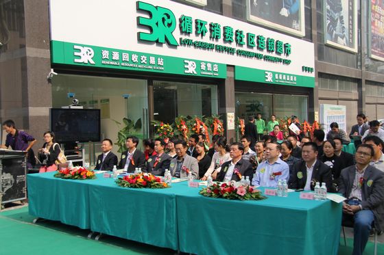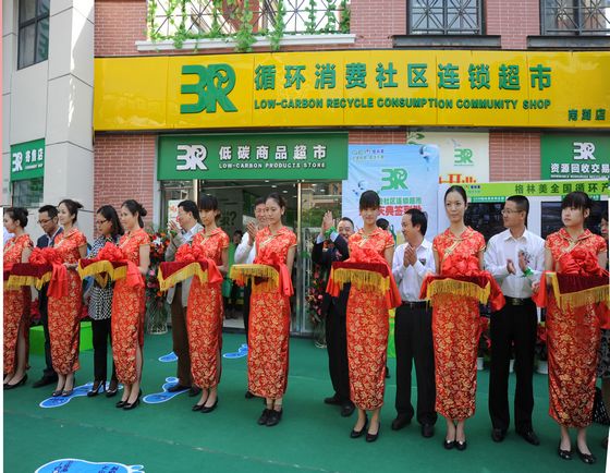 2011年10月18日上午,全國(guó)首家以循環(huán)消費(fèi)為主題的“3R循環(huán)消費(fèi)社區(qū)連鎖超市”(3R店)在湖北省武漢市和荊門(mén)市兩地三店隆重開(kāi)業(yè)。自此,國(guó)內(nèi)第一家集合低碳商品銷(xiāo)售、二手商品寄賣(mài)及再生資源交易與循環(huán)利用于一體的新型循環(huán)消費(fèi)超市正式在湖北閃亮登場(chǎng),標(biāo)志著一個(gè)改變居民生活方式的循環(huán)消費(fèi)商業(yè)模式的誕生!湖北省政府郭生練副省長(zhǎng)、武漢市人大常委會(huì)副主任鄭永新、荊門(mén)市委常委、副市長(zhǎng)胡道銀、荊門(mén)市人大常委會(huì)副主任賀明海、荊門(mén)市政協(xié)副主席文觀云,湖北省商務(wù)廳、荊門(mén)市政府、省、市有關(guān)部門(mén)領(lǐng)導(dǎo)以及中央、省市媒體代表和社區(qū)居民、學(xué)生代表共300余人分別在武漢、荊門(mén)兩地出席了此次開(kāi)業(yè)慶典。
