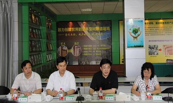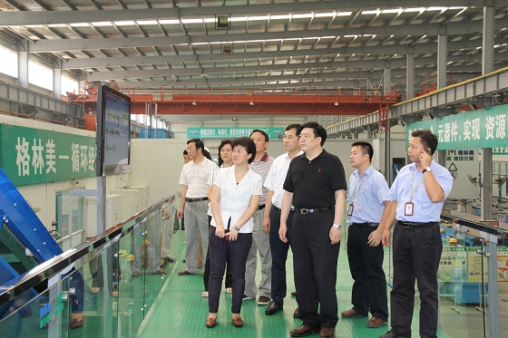 在武漢格林美公司總經(jīng)理王健、荊門格林美武漢分公司總經(jīng)理楊正新的陪同下,周廳長一行先后參觀了格林美在線監(jiān)控中心、家電以舊換新倉庫、電子廢棄物和塑木型材生產(chǎn)線,并認真聽取了格林美公司工作匯報。