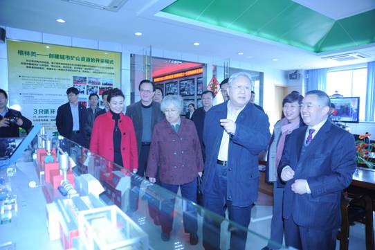 圖3. 董事長許開華向路委員長(左二)介紹格林美完整的廢物處理產(chǎn)業(yè)鏈模型